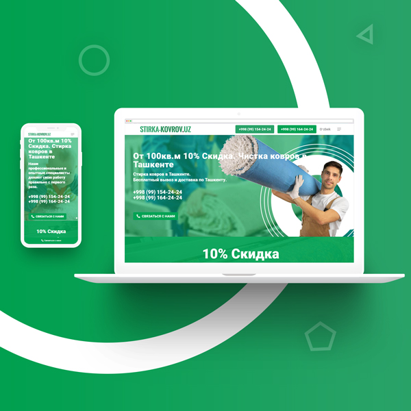 Создание сайта и разработка дизайн сайта в Ташкенте для stirka-kovrov.uz