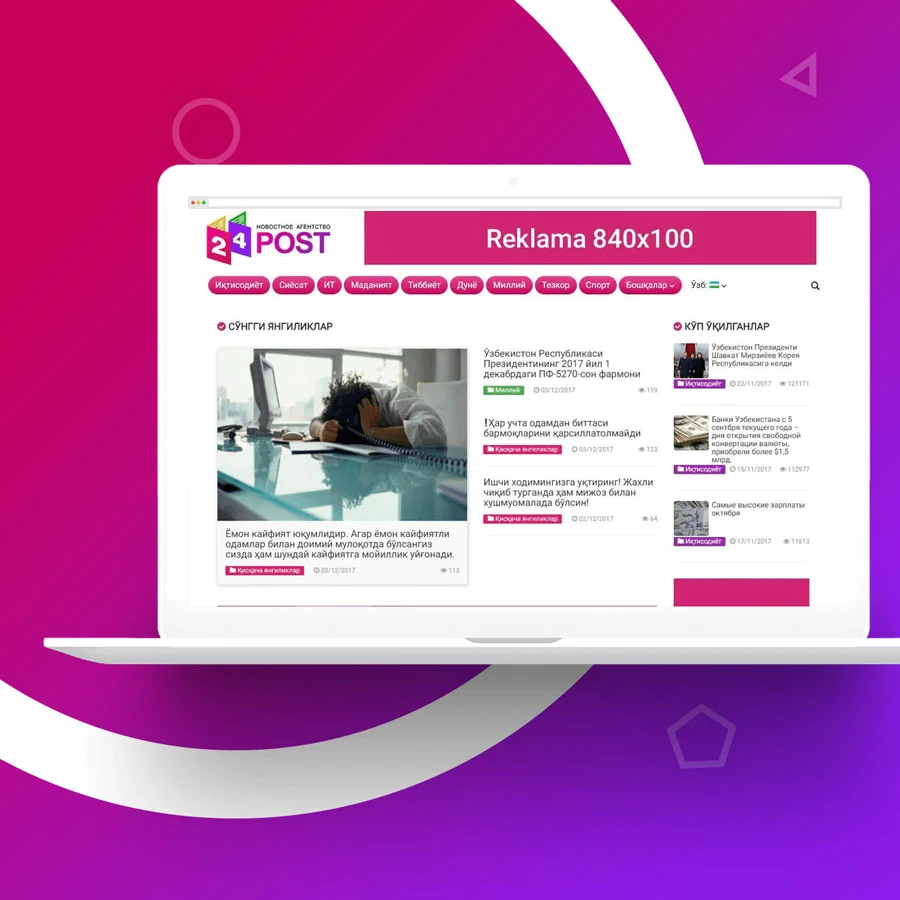 Разработка дизайн сайта и создание сайта для 24post.uz